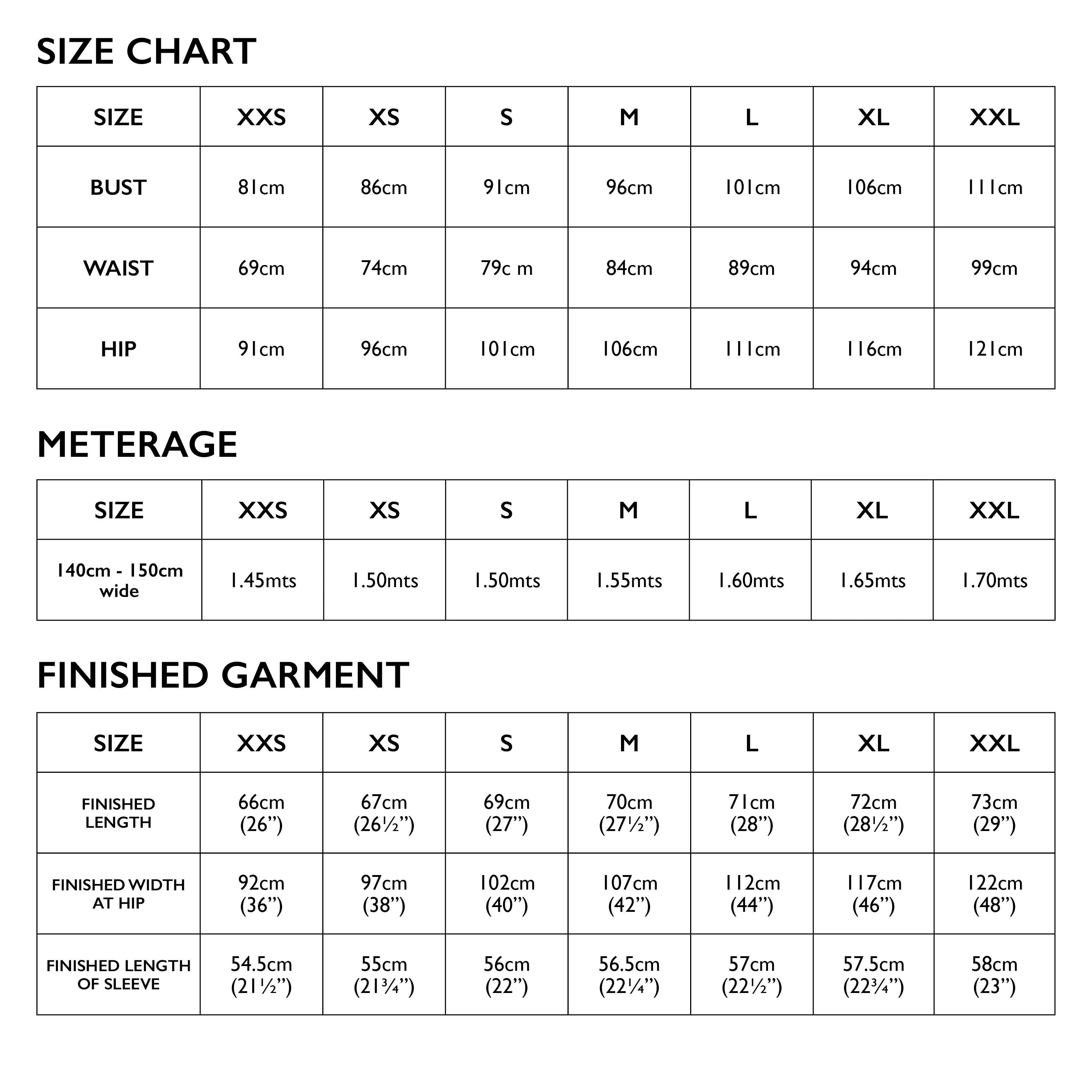 Recommended fabrics: Good quality light weight viscose/elastane, cotton/elastane, wool/elastane and poly/elastane jersey