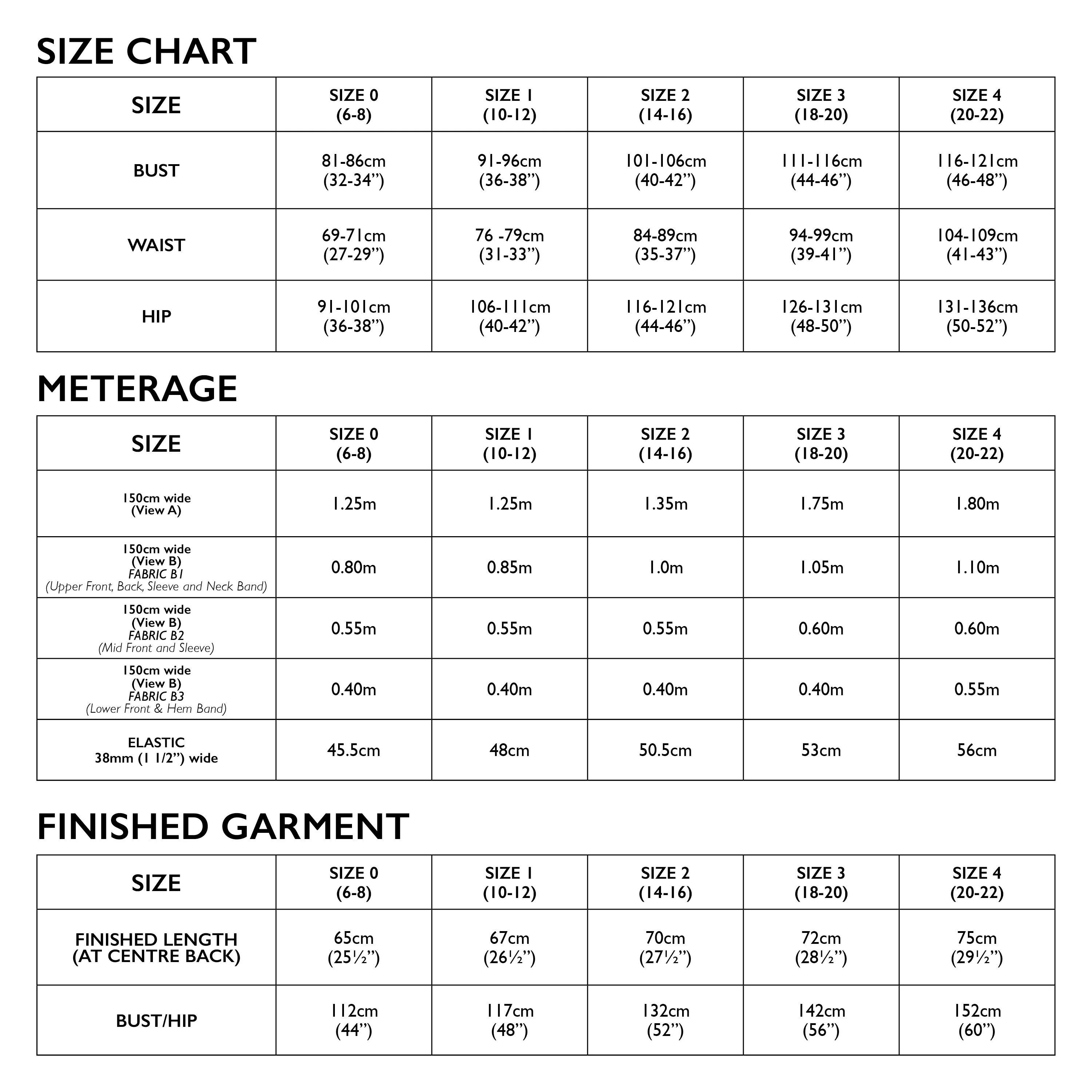 *Sheet 1 includes pattern pieces required for both Views A and B. Sheet 2 includes the pattern piece for Front (View A only). Sheet 3 includes the pattern pieces for Front (View B only)