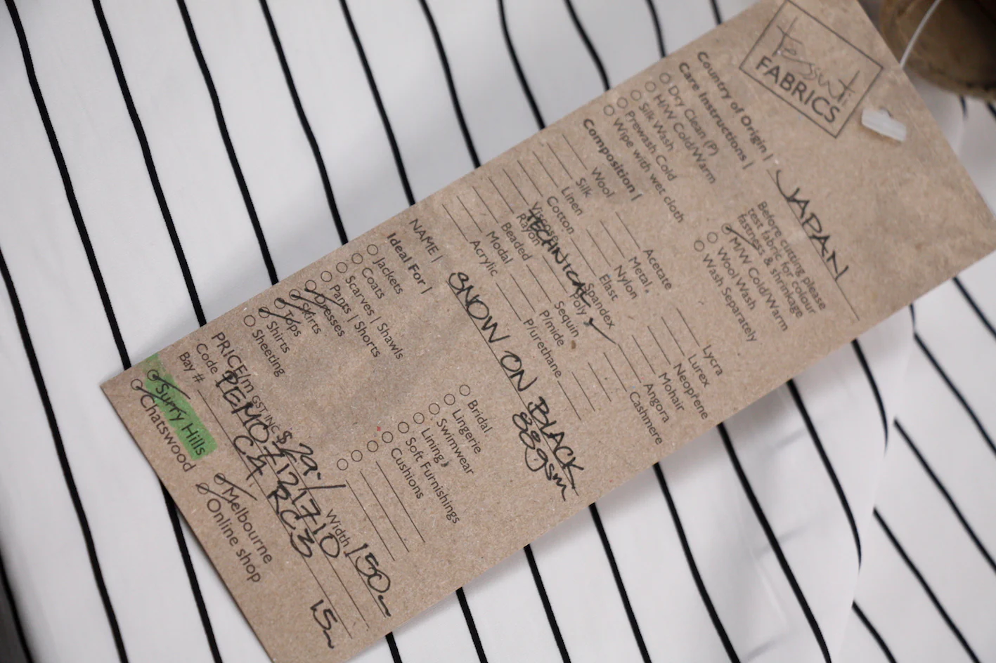 White/black stripedĀ Japanese technical 100% polyester