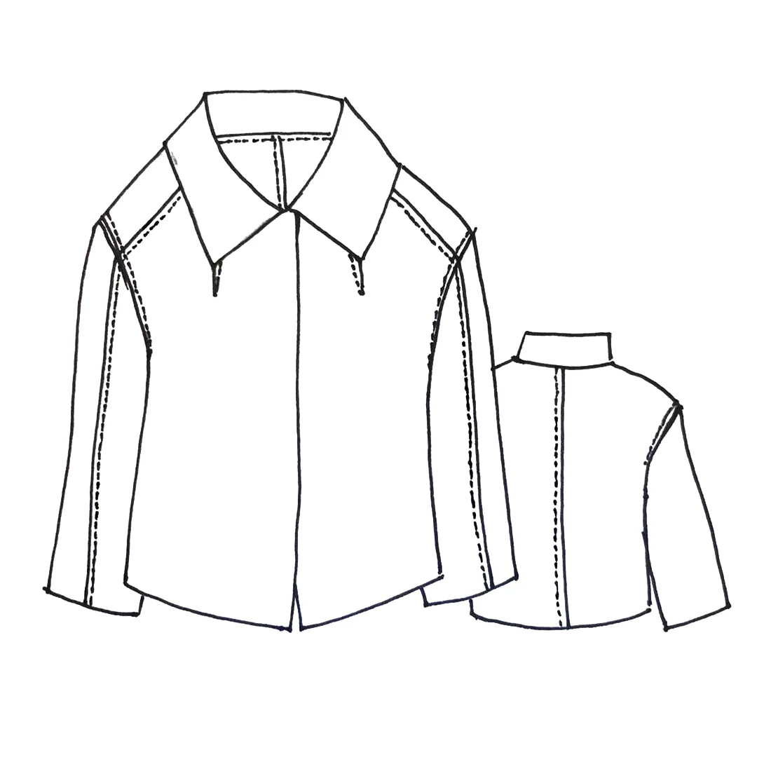 The cropped & boxy Verona Jacket features extended shoulders, peaked hemline at front, collar, front shoulder darts and two-piece bracelet length sleeve. This jacket can be worn open or secured at the neck with a decorative pin. A quick and easy sew and perfect layering piece for the autumn/winter months. As seams are overlapped, and edges and hems are left raw, the Verona Jacket is best made up in boiled felted wools or wool/blends.